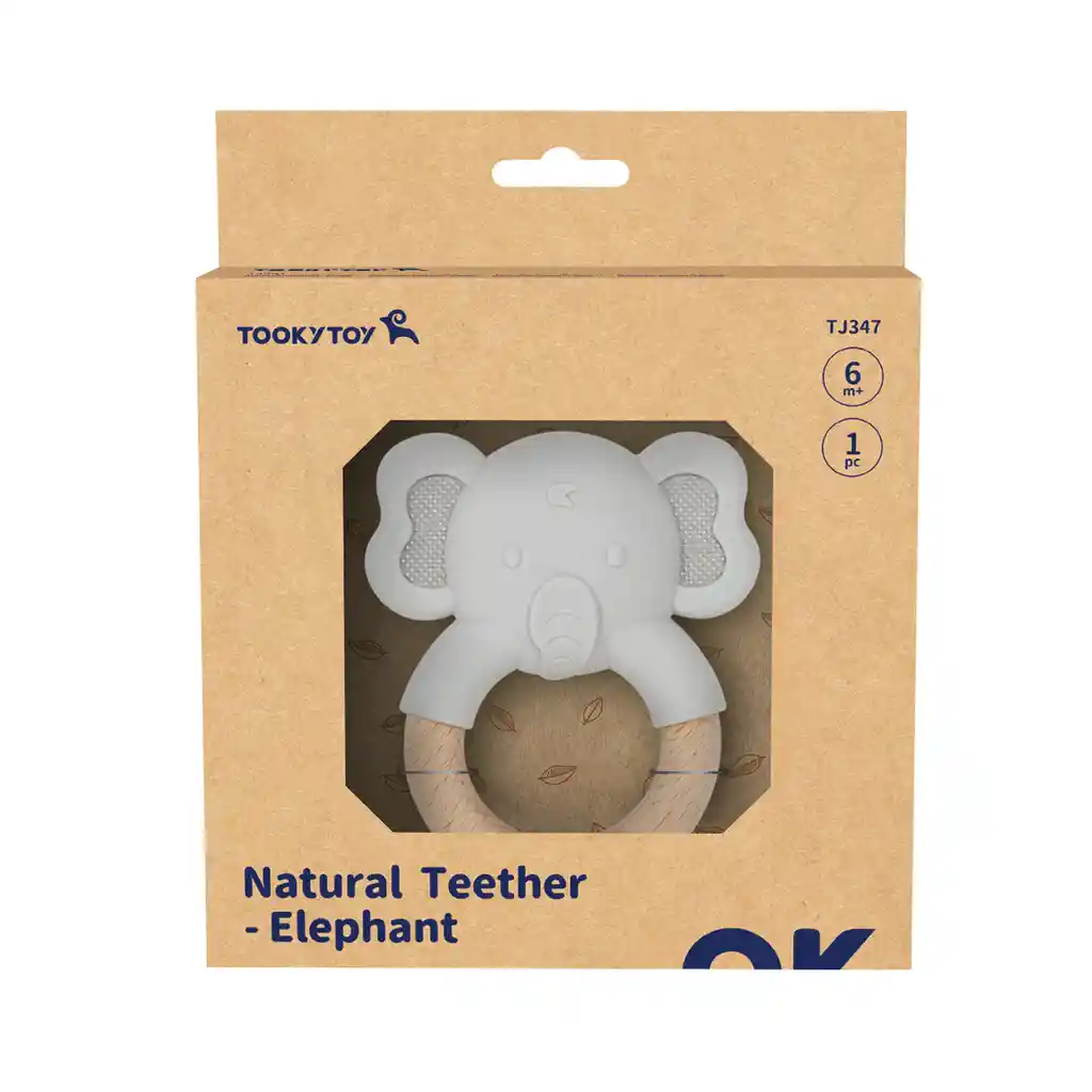 Mordedor fabricado con materiales seguros. El adorable mordedor en forma de elefante de Took Toy se convertirá en un gran amigo para todos los niños que empiezan a tener molestias por el crecimiento de los dientes. Los niños pueden hacer sonar y morder la rueda de madera y el elefante de goma sin miedo. Esto aliviará el dolor de sus encías. Se adapta muy bien a la mano. Gracias al grueso anillo de madera, los niños pueden sujetarlo maravillosamente en sus manos y no sólo morderlo, sino también apretarlo y jugar. El mordedor es completamente seguro para los niños y es apto a partir de los 6 meses.