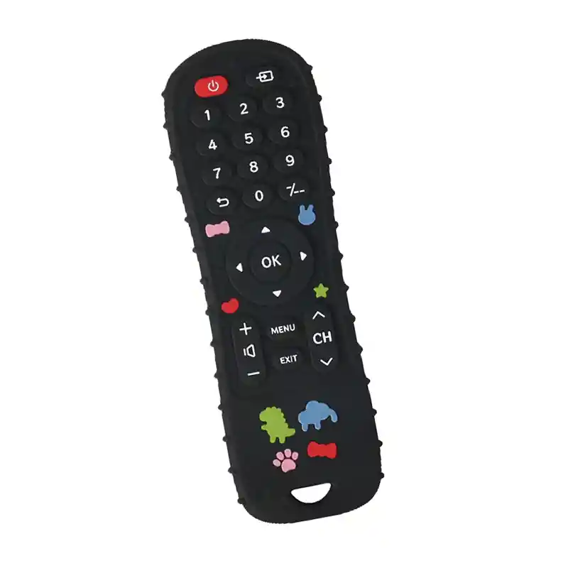 Descripción: Mordedor en forma de control remoto, está adecuado para aquellos niños pequeños que aman jugar con el control y este pueda ser un reemplazo del control remoto real. Es suave, seguro con un tamaño fácil de agarrar y sostener. Ayuda a tu bebé a aliviar las molestias durante el período de dentición. La textura de la superficie puede ayudar a masajear las encías hinchadas. Especificaciones: Material: Silicona. Color: Negro con boton de colores. Dimensión: 14,1 cm x 4, 7 cm (Aprox). Contiene 01 Control Remoto.