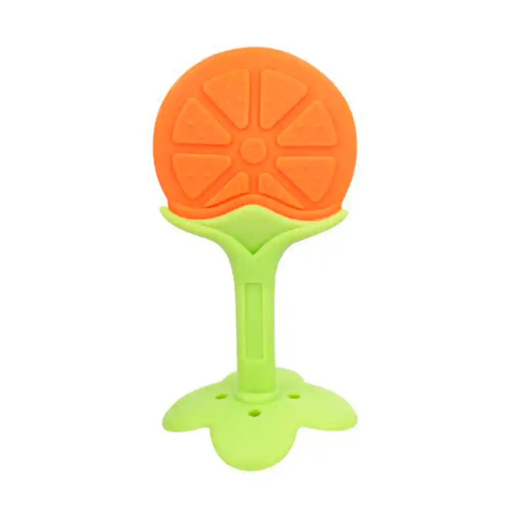 Material: Silicona Color: Variados Diseño: Naranja Tamaño: 10 x 4 cm aprox Contenido: 1 Mordedor Silicona Fruta Encaja perfectamente en la boca del bebé Masajea suavemente las encías Diseño con forma de frutas