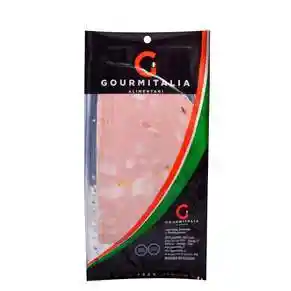 Mortadella Bologna I.G.P. (Identificación Geográfica Protegida) es una salchicha cocinada hecha exclusivamente con carne de cerdo pura, de forma cilíndrica u ovalada, de color rosa y con un aroma intenso y ligeramente picante. La mortadela IGP de cerdo de Bolonia es una salchicha cocida, de forma cilíndrica u ovalada, de color rosa y con un aroma intenso y ligeramente picante. Para su preparación solo se utilizan cortes finos (carne y lardelli de alta calidad), desmenuzados adecuadamente para obtener una pasta fina. El sabor es completo y bien equilibrado. Una vez cortada, la superficie es aterciopelada y uniformemente de color rosa brillante. La mortadela de Bologna exuda un aroma particular y aromático y su sabor es típico y delicado. GLUTEN FREE LAMINADA E INTERFOLIADA