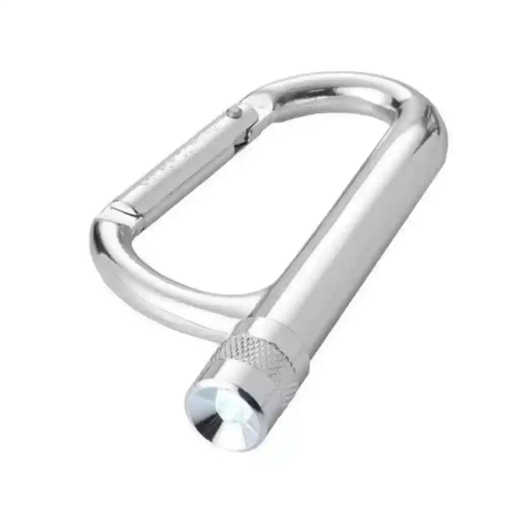 MOSQUETON QUAIL LINTERNA ACCESORIO CAMPING Descubre el innovador mosquetón en forma de D con luz LED para tus aventuras al aire libre. Este práctico mosquetón cuenta con una luz LED integrada que te brinda una fuente de luz adicional en situaciones de poca visibilidad. Perfecto para acampar, hacer senderismo, practicar deportes al aire libre y más. Su diseño en forma de D ofrece una gran resistencia y capacidad de carga, lo que lo convierte en una herramienta versátil para asegurar y colgar tus equipos. ¡Agrega este mosquetón con luz LED a tu equipo de aventuras y descubre una nueva forma de iluminar tus caminos!»