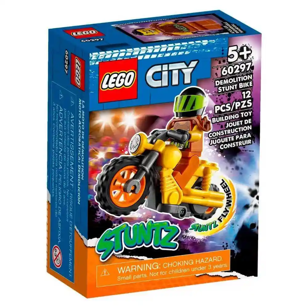 Potencia el juego de tu peque con el set de juguetes LEGO® City Moto Acrobática: Demolición (60297), que incluye a Wallop, el atrevido personaje de la serie para televisión LEGO City: Aventuras en la Ciudad, y una veloz moto acrobática con rueda de inercia: la combinación ideal para organizar exhibiciones acrobáticas que arrancarán a aplaudir al público.