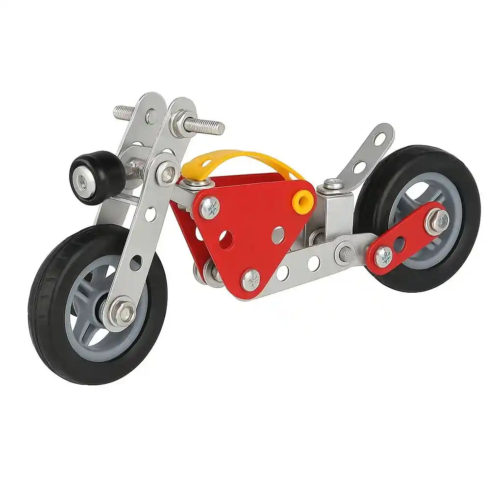 Set de construcción tipo con 93 piezas para armar una motocicleta metálica 3 en 1. Ideal para niños desde 8 años, fomenta la creatividad, coordinación y pensamiento lógico. Incluye piezas de metal, llantas y herramientas básicas para montaje. ¡Diversión educativa garantizada! ¿Quieres que te genere una descripción más larga y profesional para la publicación completa?