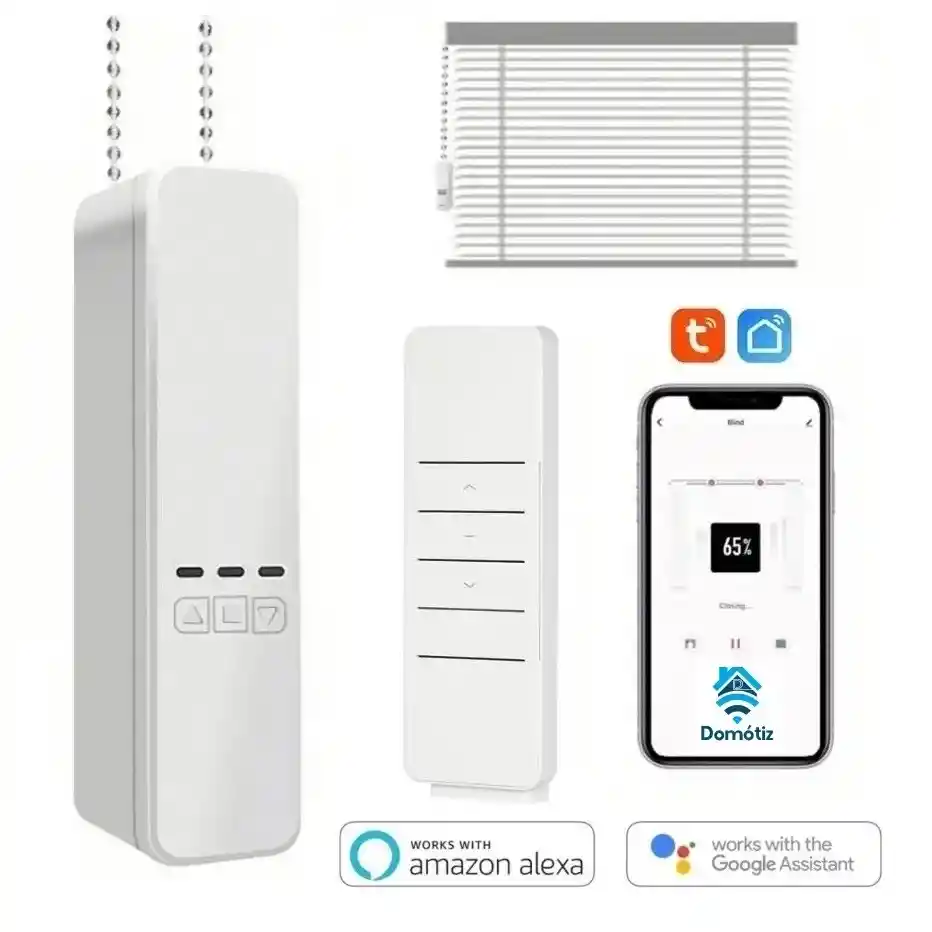 WIFI BLINDS MOTOR + CONTROL REMOTO Ya es momento de dejar atrás el antiguo mecanismo para subir y bajar la persiana de forma manual. ¡Eso ya quedó en el pasado! Ahora ya no tendrás que levantarte de tu sofá o cama para manipular la persiana que se encuentra lejos de ti. Hoy en día, es posible tener el control de las persianas de su hogar de una forma mucho más simple y práctica. Es ahí donde aparece el concepto de domótica, para que ahora pueda tener el CONTROL DE LOS ARTEFACTOS DE SU HOGAR DESDE LA PALMA DE SU MANO, lo cual aporta mucha comodidad en el día a día. Actualmente, existen diversos accesorios domóticos que pueden convertir su casa en una casa inteligente, entre ellos se encuentra el motor para cortinas enrollables compatible con AMAZON ALEXA Y GOOGLE HOME, lo cual le permite convertir instantáneamente cualquier persiana en una inteligente. De esta forma, puede tener el control total de la persiana mediante su teléfono móvil, el control remoto o incluso utilizando la voz. ¿Lejos de la persiana y tiene que desplazarse hacia ella? No se preocupé, el motor para cortinas enrollable le permite CONTROLAR SU PERSIANA MEDIANTE SU SMARTPHONE desde la comodidad de su sofá o cama. Simplemente debe descargar la aplicación Tuya (Android o iPhone) desde su smartphone, un par de pasos de configuración y listo. ¿No tiene su teléfono móvil a mano? INVOQUE SU ASISTENTE VIRTUAL favorito, ya sea Amazon Alexa o Google Assistant y DÍGALE QUE SUBA O BAJE LA PERSIANA. ¡Esto si es inteligente!. ¿Quiere ver una película o una serie y hay demasiada luz en su habitación? TOME SU TELÉFONO móvil, abra la aplicación Tuya y BAJE LA PERSIANA o simplemente dígale a Alexa o a Google Assitant que lo haga, el asistente lo hará por usted. Ahora ya podrá disfrutar de su película o serie que tanto quiere ver. ¿Suele despertar siempre a la misma hora? o ¿suele bajar su persiana siempre a la misma hora? El motor para cortinas enrollable le permite CONFIGURAR HORARIOS DE SUBIDA O BAJADA DE LA PERSIANA desde la misma aplicación Tuya, de esta forma, la persiana siempre subirá y/o bajará a la misma hora. Ahora cada vez que despierte y se levante de su cama la persiana se levantará, y en el otro caso, al caer la noche las persianas bajarán de forma automática. Ya no tendrá que preocuparse en subir o bajar las persianas, ¡el motor para persianas lo hará por usted!. Además, puede REALIZAR AUTOMATIZACIONES con otros accesorios domóticos del hogar que sean compatibles con la aplicación Tuya para crear un sin fin de combinaciones entre ellos. ¿Quiere compartir el control de las persianas con el resto de su familia? No hay problema, mediante la aplicación Tuya puede dar acceso al control del motor para persianas con el resto de su familia para que puedan controlarlo en conjunto. Solo tiene que añadir a los integrantes de su grupo familiar a la App Tuya y después de unos minutos ya estará configurado, ahora ya puede controlar las persianas de su hogar en conjunto con los demás miembros de de su familia. ¿Busca comodidad y poder disfrutar de la estadía en su hogar? Wifi Blinds Motor se lo entrega. ESPECIFICACIONES TÉCNICAS: - Color: blanco. - Temperatura de funcionamiento: -20°C a 65°C. - Voltaje de entrada: ca 110/220 V. - Torque nominal: 1,35 Nm. - Carga máxima de levante: 10 kg. - Velocidad de giro: 55 rpm. - Tamaño: 182,1 x 43,1 mm. - Grosor: 40,4 mm. - Compatibilidad asistentes: Google Assistant y Amazon Alexa. - Compatibilidad sistemas operativos: Android 4.4 y superior / iOS 8 y superior. - No requiere de hub o concentrador para su funcionamiento.