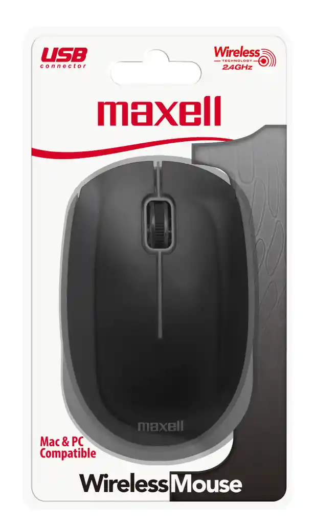 Mouse Inalámbrico Maxell 1200 DPI MOWL -100 Negro Mouse inalámbrico básico óptico. Resolución de 1200 DPI. Receptor USB, tecnología inalámbrica 2.4GHz. Diseño curvo cómodo ergonómico y liviano. Textura anti resbalante. Compartimiento interno para guardar el receptor USB. Compatible con MAC y Windows.