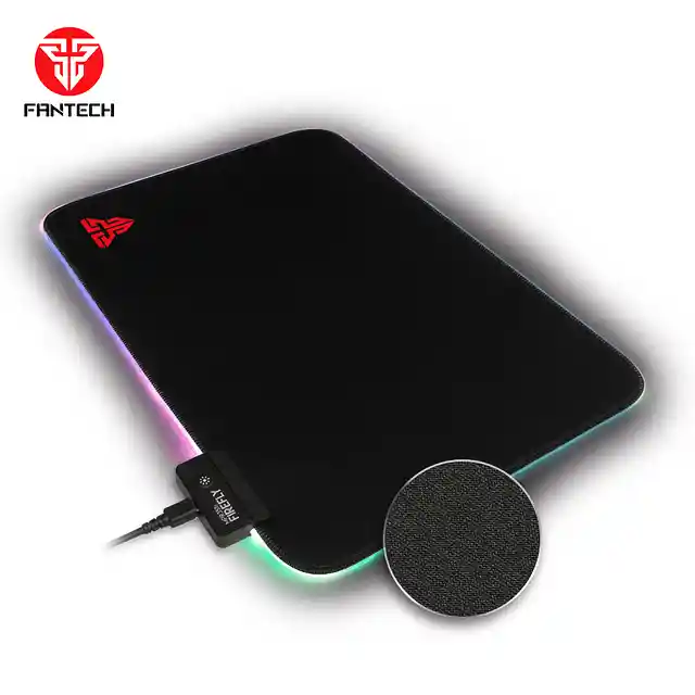 Para lograr el equilibro perfecto entre control y velocidad, el mousepad Fantech Firefly presenta una superficie de tela que le brinda precisión milimétrica y velocidad sin esfuerzo. La superficie consistente y precisa asegura que cada movimiento del mouse sea traducido en movimientos de cursor, para que disfrutes de la máxima precisión durante los duelos de juego más llenos de acción. 14 MODOS DE ILUMINACION RGB El nuevo nivel de mousepad de juegos con efectos de iluminación personalizables. Con la iluminación al costado y en la parte inferior, el mousepad Fantech Firefly sincroniza con sus otros dispositivos Fantech RGB para que la experiencia de juego se complemente con una agradable visualización de colores y efectos. – Tamaño: 350mm x 250mm x 4mm