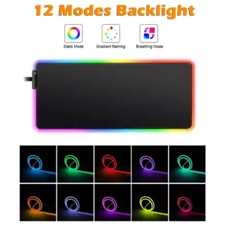 Mouse Pad Gamer Aoas s4000 RGB Con Luces Led. Tamaño: XL 80 cm x 30 cm espesor de 4 mm Material de fibra de poliuretano Diseñado con material trenzado de fibra extrafina, con una superficie suave y micro texturizada, navegación precisa y optimiza su experiencia de juego. Base de goma antideslizante engrosada Control preciso del mouse y estabilidad consistente en su escritorio, goma plegable y ecológica, sin olor peculiar. La base de goma gruesa de 4MM la mantiene en la misma posición incluso si pasas el mouse con fuerza Luz led programable La luz RGB se controla mediante un interruptor, presione 1s para encender la luz, presione 5s para apagar la luz. Haga doble clic en el botón INTERRUPTOR para cambiar el brillo de la luz RGB, admite dos ajustes de brillo. Presione el botón SWITCH para cambiar los modos de luz RGB Medidas: Largo: 80 cm Ancho: 30cm Espesor: 4mm
