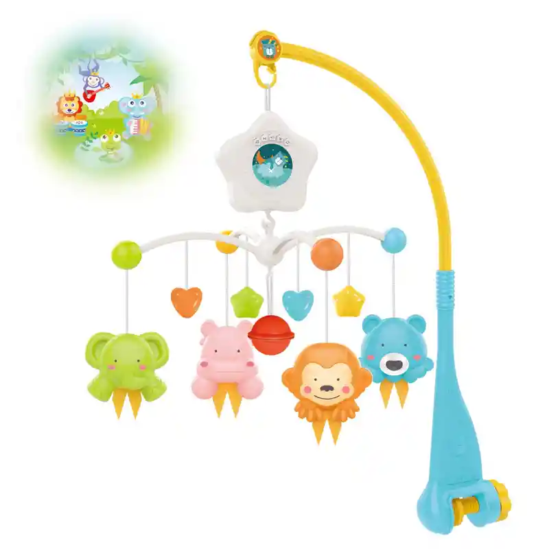 Características: Tiene Proyección de luz que puede ser utilizada como lámpara nocturna Atrae la atención y ayuda a ejercitar la visión del bebé. Contiene 12 melodías que puede hacer más grato el ambiente de tu bebé Con adaptador giratorio 360 Especificaciones: Material: Plástico Fuente de Alimentación: 3 x AA (no incluidas) Dimensiones: 48 cm x 23 cm x 46 cm aprox. Contenido: 01 Móvil con 04 colgantes.