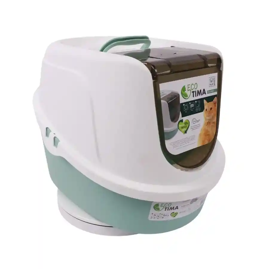 Cubierta de seguridad extraíble. La puerta batiente de plástico proporciona un fácil acceso de entrada y salida para su gato; El capó se levanta para facilitar la limpieza, Asa superior para un transporte cómodo, Filtro incluido para eliminar los olores Escalón delantero para mantener la arena para gatos en el interior M-PETS ECO TIMA es la caja de arena para gatos definitiva para los dueños de gatos que se preocupan por el medio ambiente. Fabricado con plástico reciclado con certificación GRS, ECO TIMA ofrece toda la comodidad y el orden de una caja de arena de plástico resistente para gatos, sin dañar el medio ambiente. La gama ECO TIMA está disponible en tres colores naturales: Azul Océano, Arena del Desierto y Verde Mar. Así que puedes elegir el perfecto para que coincida con tu personalidad e interior. Nuestro diseño moderno incluye una puerta batiente para facilitar el acceso y un escalón incorporado dentro de la caja para evitar el arrastre de la arena para gatos. ECO-friednly, hecho de plástico reciclado. Cuando llegue el momento de limpiar la caja, simplemente retire la parte superior y vuelva a colocar la arena para gatos del interior. Cada ECO TIMA viene con un filtro incluido, para garantizar que su hogar se mantenga fresco y libre de olores. Medidas: 52,3 x 39,7 x 38 cm