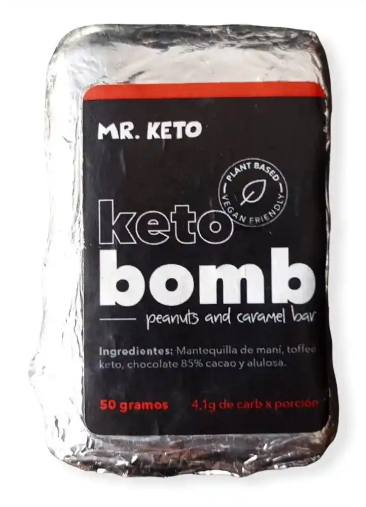 Disfruta sin culpas nuestra ketobomb! Barrita de mantequilla de maní con caramelo keto y bañada en chocolate 85% cacao. Nueva fórmula Plant based 4,1g de carbohidratos por porción. 50 gramos.Solo 4,1 carbs por porción!