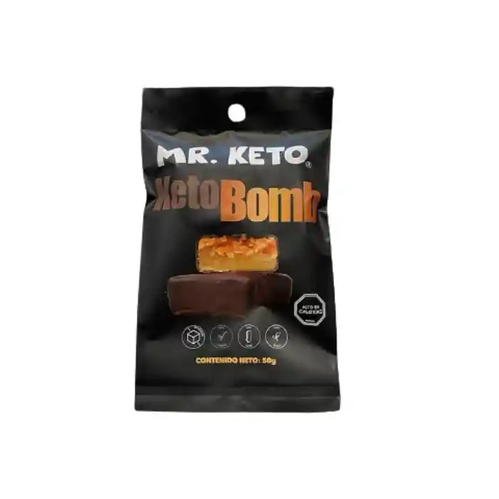Disfruta sin culpas nuestra ketobomb! Barrita de mantequilla de maní con caramelo keto y bañada en chocolate 85% cacao. Nueva fórmula Plant based 4,1g de carbohidratos por porción. 50 gramos.