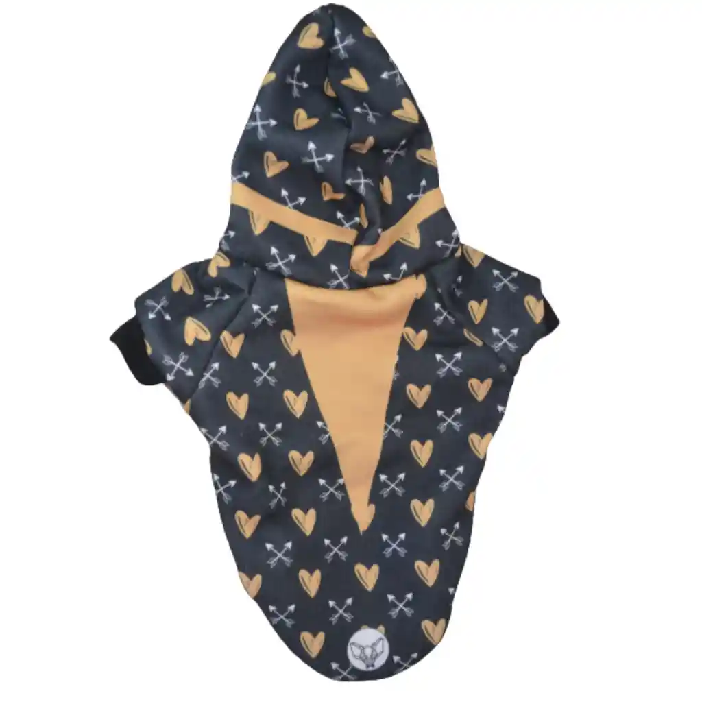 Mr Paolo Glam Poleron con Gorro Estampado con Gorro N53 Negro con Corazones dorados L