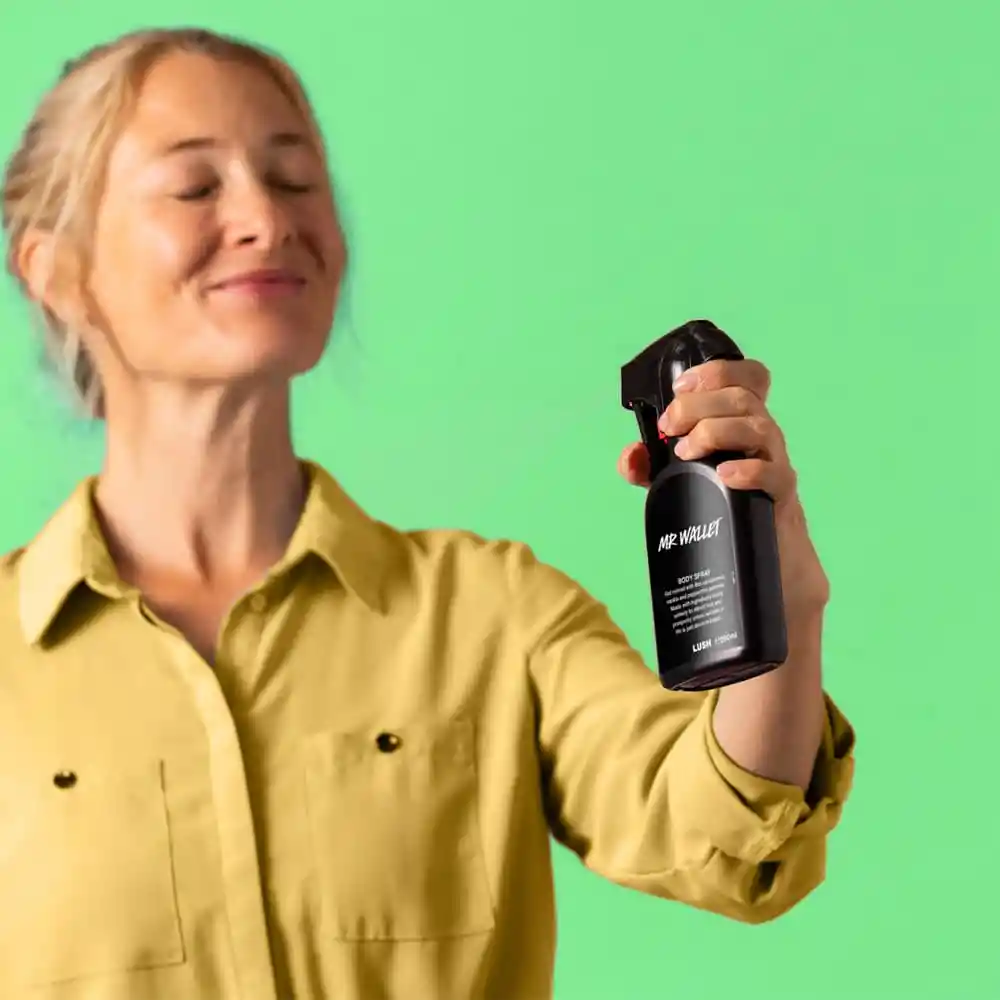 El body spray Mr Wallet combina sándalo, vainilla y menta en una fragancia intrigante que invita a soñar con la fortuna.