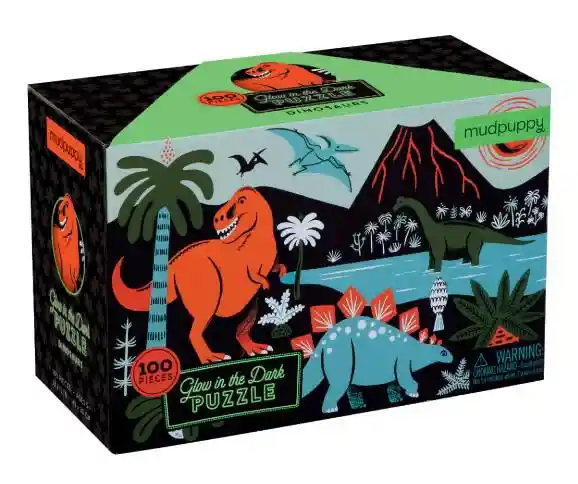 Vuelve a los tiempos prehistóricos con los dinosaurios que brillan en la oscuridad. Puzzle de 100 piezas, apaga las luces para ver la imagen brillar. Tamaño Puzzle Armado: 46 x 30.5cm. Tamaño Caja:19 x 13 x 9cm. Las piezas del puzzle contienen 90% de papel reciclado. Impreso con tintas no toxicas a base de soja. Edad Recomendada: +5 Años