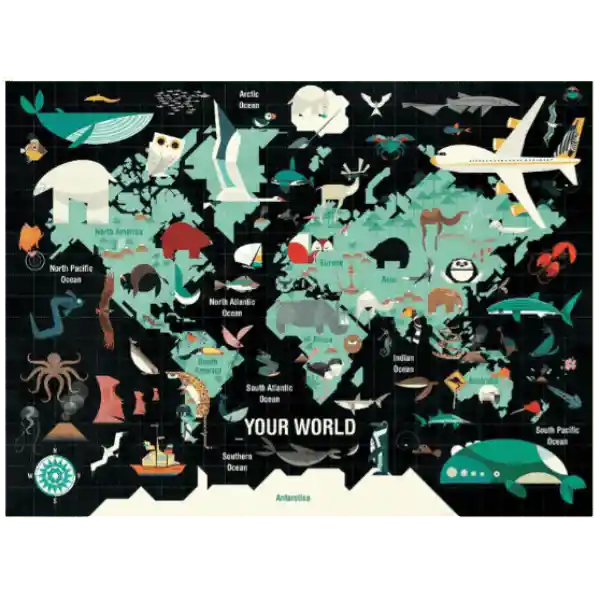 Arma este rompecabezas familiar de 1000 piezas de Mudpuppy para descubrir: "Tu mundo". El rompecabezas completo presenta una variedad vibrante y divertida de animales en un mapa del mundo. Las piezas vienen empaquetadas en una caja resistente, perfecta para regalar, reutilizar y guardar. ¡Excelente actividad familiar para disfrutar juntos! De 8 a 99 años. Medidas del rompecabezas armado 68,5 x 51 cm. El cartón gris del rompecabezas contiene un 90 % de papel reciclado. El empaque contiene un 70 % de papel reciclado. Impreso con tintas no tóxicas. Todos los productos Mudpuppy cumplen con las normas de seguridad CPSIA, ASTM y CE. Se recomienda de 8 años en adelante.