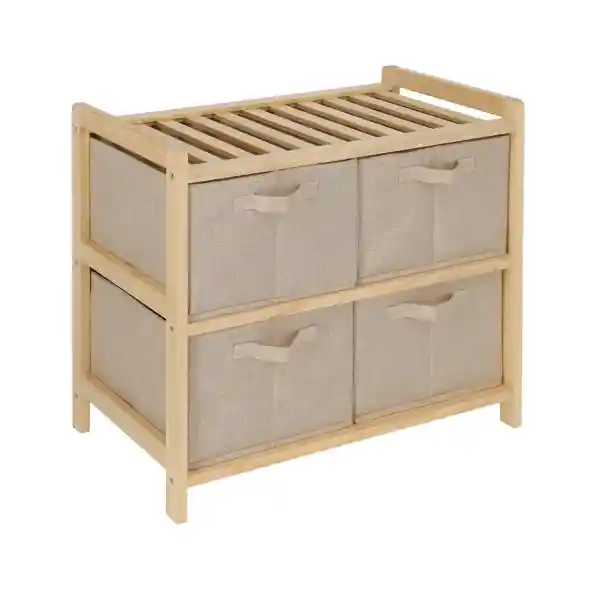 Cajonera de Madera de Pino Con 4 Cajones de Tela y 2 Niveles Tiene un Tamaño de 67 x 575 x 37 cm Resiste Hasta 20 Kg en Total. Requiere Armado (Incluye Instrucciones).