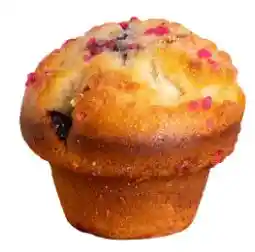 Muffin de arándanos relleno de frambuesa, quequito con sabor a arándanos relleno de mermelada de frambuesa.