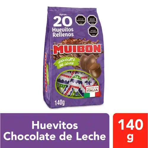 Muibon Huevito de Chocolate de Leche. Bolsa de 140 gramos con 20 unidades.