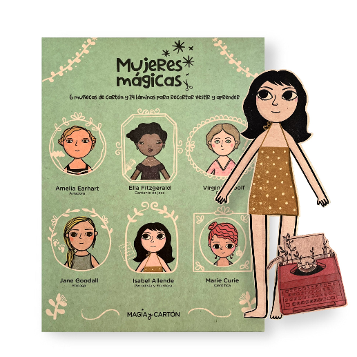 <p><strong>Mujeres Mágicas</strong> es una colección única de 6 muñecas de cartón y 18 láminas para recortar que te invitan a conocer a mujeres extraordinarias de distintos lugares y épocas. Estas heroínas han cambiado el mundo con su perseverancia, pasión, talento, y por supuesto, ¡su magia interior!</p> <p>Descubre a:</p> <p>🔬 <strong>Marie Curie</strong>: la científica que iluminó el camino.<br>✍🏼 <strong>Virginia Woolf</strong>: la escritora que rompió moldes.<br>🛫 <strong>Amelia Earhart</strong>: la pionera que conquistó los cielos.<br>🎙️ <strong>Ella Fitzgerald</strong>: la voz que marcó una era.<br>🦍 <strong>Jane Goodall</strong>: la defensora incansable de los animales.<br>📕 <strong>Isabel Allende</strong>: la narradora de historias que emocionan.</p> <p>Con <strong>Mujeres Mágicas</strong>, no solo te divertirás recortando y jugando, sino que también te inspirarás con sus increíbles historias. A través de estas muñecas de papel, queremos que las nuevas generaciones aprendan el valor de atreverse a explorar lo desconocido, perseguir sus sueños, y dejar su propia marca en el mundo.</p> <p>Cada muñeca viene con su propio closet, lleno de vestimenta y accesorios inspirados en la ropa real que usaban estas icónicas mujeres. Guarda y combina sus atuendos para jugar una y otra vez.</p> <p>🎉 ¡Solo necesitas unas tijeras para desatar horas de diversión y creatividad! ¡Deja que la magia comience!<span style="font-size: 0.875rem;"><br><br></span></p>