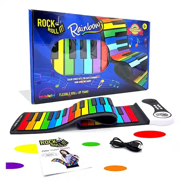 Con Este Piano Arcoíris Portátil y Flexible, Podrás Tocar Tus Melodías Favoritas en Cualquier Lugar, ¡Hasta al Aire Libre! Simplemente Enróllalo y Guárdalo Después de tu Concierto. Un Regalo Creativo y Novedoso, Además de Útil Para Practicar Coordinación, Destreza, y Más. Incluye un Libro Para Tocar Por Colores: Solo Sigue Los Colores Para Tocar Canciones Completas, Desde Cumpleaños Feliz a Jingle Bells. ¡Aprender a Tocar Piano Nunca Fue Tan Fácil y Divertido! Este Teclado Multifuncional Les Gustará a Pianistas Desde Principiantes a Expertos, Niños y Adultos. Por su Sonido Realista, Sentirás Que Estás Tocando un Piano de Verdad, Sin Ocupar Tanto Espacio. Tiene 49 Teclas, 8 Tonos Diferentes, 6 Canciones Demo, Posibilidad de Grabación, Eco, Parlante Con Control de Volumen y Salida de Audio Para Audífonos o Parlantes. Úsalo Con Pilas, o Cárgalo Con un Cable Usb (Incluido) Para Tocar Cuando Quieras. Incluye: Piano Arcoíris, Libro Cancionero, Cable Usb y Manual Del Usuario. Edad Recomendada: 6+