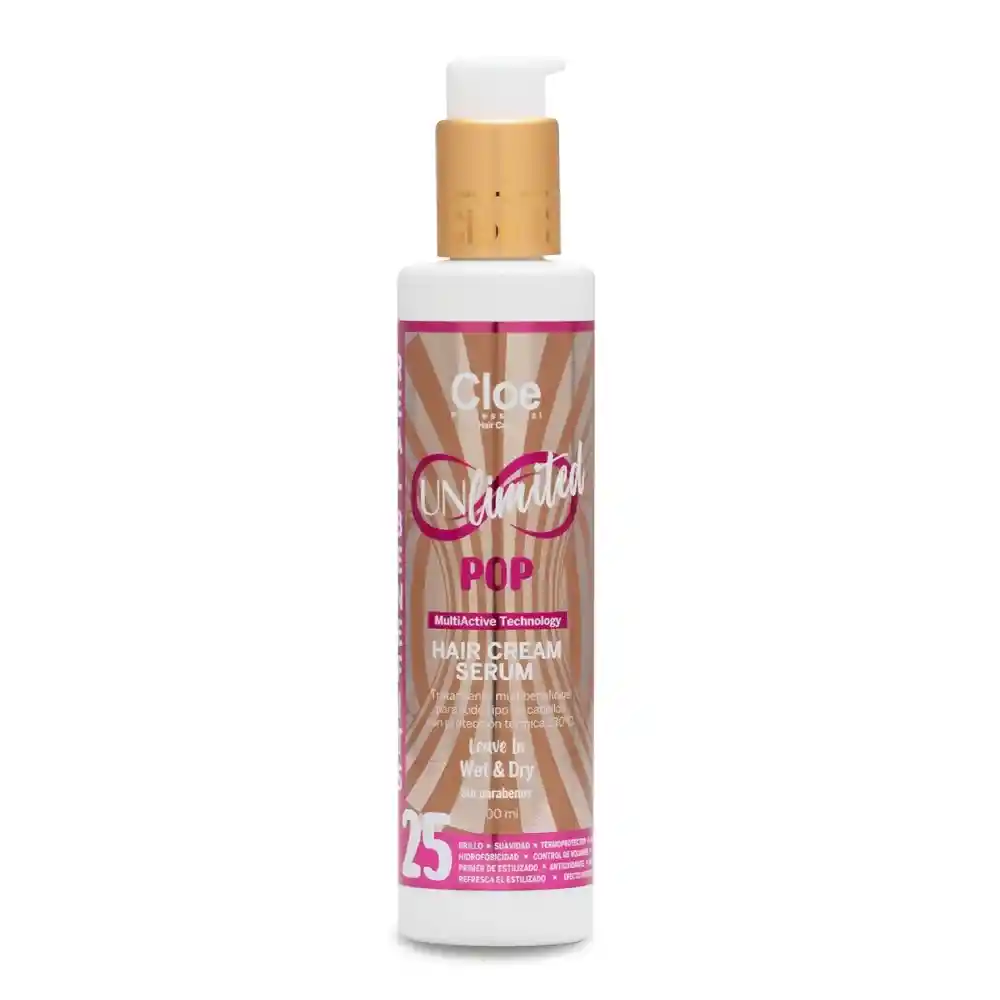 Cloe Unlimited Pop Multibeneficios - 200 ml Tratamiento Global de Acción Profunda: 25 Beneficios en 1 Unlimited Pop es el finalizador definitivo de Cloe, diseñado para quienes buscan una perfección absoluta en un solo paso. Su fórmula híbrida actúa como tratamiento reparador, protector térmico y facilitador de peinado, abordando todas las necesidades de la fibra capilar, desde la corteza hasta la cutícula. En su formato de 200 ml, esta bruma cremosa de absorción inmediata es el escudo total contra el daño ambiental, químico y mecánico, garantizando un cabello sano, manejable y radiante en cualquier circunstancia. ✨ Los 25 Beneficios Unlimited Tratamiento y Reparación: Nutrición profunda de la fibra. Reparación de zonas dañadas. Reduce la porosidad capilar. Acondicionamiento instantáneo. Fortalece la estructura de la queratina. Aporta vitalidad al cabello opaco. Ayuda a prevenir el quiebre. Sella las puntas abiertas. Protección y Blindaje: 9. Protección térmica hasta 230°C. 10. Filtro UV para proteger el color. 11. Escudo contra la contaminación ambiental. 12. Protección contra la humedad externa. 13. Efecto antioxidante (Vitamina E). 14. Previene el daño por herramientas de calor. Estilizado y Acabado: 15. Control total del frizz. 16. Facilita el desenredado extremo. 17. Mejora el deslizamiento de la plancha. 18. Aporta un brillo espejo multidimensional. 19. Suavidad aterciopelada al tacto. 20. Facilita el secado (reduciendo el tiempo). 21. Mantiene el peinado por más tiempo. 22. Aporta cuerpo y volumen natural. 23. No apelmaza ni deja residuos grasos. 24. Control de la estática (anti-frizz). 25. Fragancia sofisticada de larga duración. 🌿 Ingredientes Clave Complejo de Aminoácidos y Proteínas: Reconstruyen los puentes capilares debilitados. Vitamina E: Protege contra el envejecimiento prematuro de la hebra. Filtros Solares de Nueva Generación: Evitan la oxidación del color, manteniendo el tono vibrante. Agentes Emolientes Ligeros: Suavizan la cutícula sin restar movimiento. 🛠️ Modo de Uso Profesional En Húmedo: Vaporiza de medios a puntas a una distancia de 20 cm. Peina para distribuir y procede al secado. Es la base perfecta para cualquier peinado. En Seco: Aplica una pequeña cantidad en las manos y desliza sobre el cabello para eliminar el frizz de último minuto o para sellar puntas después de la plancha. 💡 El Secreto del Especialista El Unlimited Pop es el producto comodín ideal para el salón. Si tienes un cabello muy rebelde, aplícalo generosamente antes de desenredar en el lavacabezas; notarás cómo los nudos desaparecen sin esfuerzo, protegiendo el cabello más frágil de la tracción del peine.