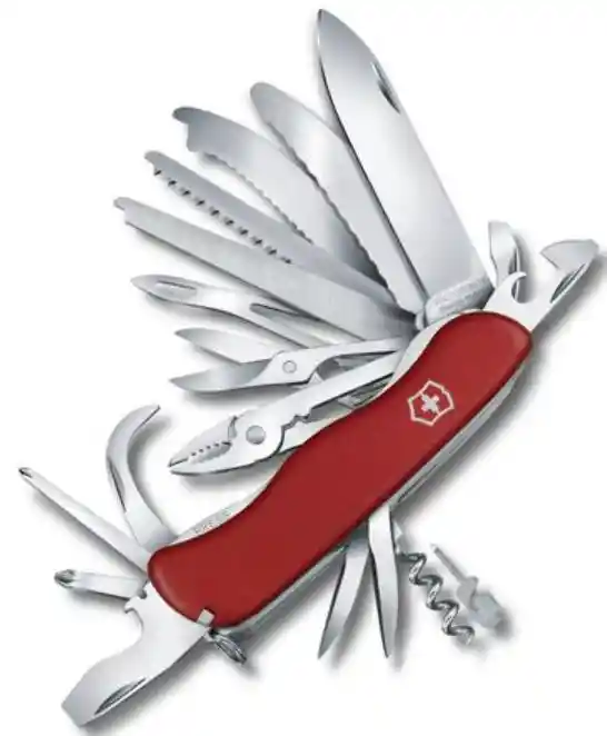 Navaja de bolsillo grande con alicate multiuso de punta fina Robusta, resistente y lista para todo, la Work Champ XL es lo máximo en cajas de herramientas portables. Capaz de desempeñar el inmenso número de 31 funciones, sin duda es un híbrido de caballo de batallas campeón que ofrece resultados tangibles en todos lados, en todo momento. Desde alicate multiuso de punta fina, sierra para metal con lima, pelacables y serrucho para madera a sacacorchos, destornillador Phillips y abrelatas, no hay obstáculo del que la Work Champ XL no pueda encargarse. Herramientas hoja grande destapador destornillador 5 mm, con bloqueo pela cables sierra para madera sierra para metal lima para metal destapador abrelatas pela cables destornillador 5 mm limpia herraduras abrelatas destornillador 3 mm corta cinturón herramienta abregrilletes punta para deshacer nudos punzón escariador destornillador Phillips 0/1, largo tijeras destornillador Phillips 1/2 alicate multiuso corta alambre prensa terminales corta cinturón pinzas palillo de dientes anilla mini-destornillador sacacorchos