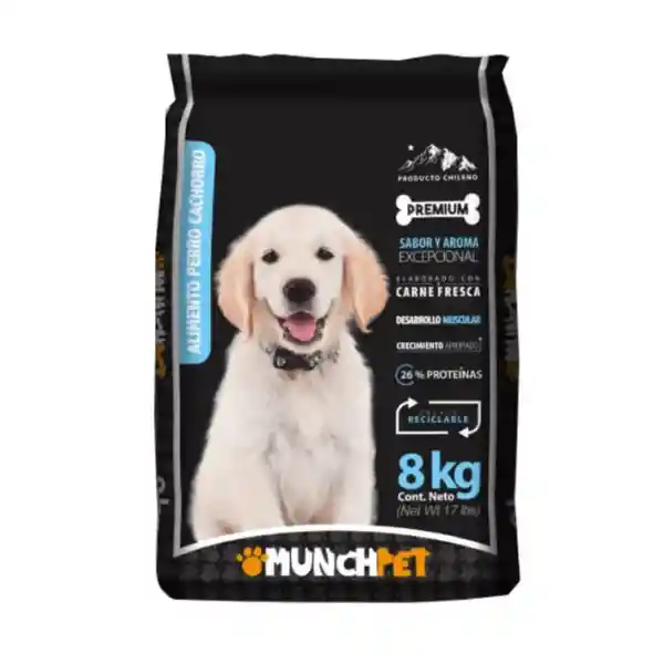 Munchpet Cachorro Premium es un alimento balanceado con un sabor y aroma que de seguro será irresistible para tu perro. El alimento es elaborado a partir de carne fresca de la zona sur del país y nuestros saborizantes exclusivos, Munchpet Cachorro Premium se encarga a través de su fórmula de entregar una dieta completa y funcional que promueve un crecimiento saludable. Al elegirnos estarás contribuyendo a un desarrollo adecuado y saludable, aportando las vitaminas y nutrientes fundamentales para esta importante etapa. Ingredientes del alimento Munchpet: El alimento perro Munchpet Cachorro Premium contiene harina de maíz y/o trigo, Harina de carne de ave y/o bovino, Carne fresca de ave y/o bovino, Subproductos de la molienda de trigo, Proteína aislada de suero lacteo, Levadura de cerveza, Colágeno hidrolizado (fuente natural de Condroitina para la protección de articulaciones), Pulpa de remolacha, Bioquina Plus, Vitaminas y Minerales. Encuentra en Pet Animal los mejores alimentos para perro y gato. Somos una tienda para mascotas preocupada de entregarle la mejor calidad y servicio a tu regalón, puedes hacer tu pedido en linea a través de nuestra pagina web y recibirlo en casa. Deja que tu mascota elija,