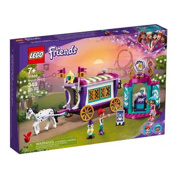 ¿Buscas un regalo para una niña que adore los vehículos inusuales? ¡El set LEGO® Friends Mundo de Magia: Caravana (41688) le va a encantar! Este fabuloso juego cuenta con una caravana de juguete para peques, la tienda de una pitonisa, 2 minipersonajes y figuras de un caballo y un búho. Adorables detalles La caravana tirada por el caballo está repleta de elementos tradicionales, como preciosas celosías y un farol antiguo. El techo, abisagrado por un lateral, permite a las niñas explorar el espacio interior. Dentro encontrarán una cama, una cocina con hornillo y una mesa a la que sentarse a comer. Después, podrán cuidar del caballo o jugar con el búho. En la tienda hay una bola de cristal. Al activar la función de giro, revela el futuro de Mia. Las niñas podrán elegir entre la cara triste o la cara sonriente, o dejar que decida el destino… La magia de la amistad en Heartlake City Los sets LEGO Friends ayudan a las peques a explorar sus pasiones en compañía de emocionantes personajes. • Las niñas se sentirán atraídas por el misterio de una feria ambulante con el mágico set Mundo de Magia: Caravana (41688). Contiene una caravana tradicional y la tienda de una pitonisa para interpretar divertidas historias de adivinación. • Incluye 2 mini personajes LEGO® Friends y figuras de un caballo y un búho que abren un variado mundo de opciones de interpretación creativa. Además, a las peques les encantará explorar la acogedora caravana con hornillo, mesa y baño oculto. • Las niñas podrán usar su imaginación para crear historias en las que cuidan del caballo de juguete, piden consejo al sabio búho, leen la bola de cristal y predicen el futuro, conducen la caravana de juguete o juegan en su interior. • ¡La tienda independiente de la pitonisa amplía la diversión! Las peques harán reír a su familia con sus predicciones o podrán llevarse la bola de cristal a reuniones de juegos en casa de sus amigas para pasarlo genial, ¡con un toque de misterio! • Este set de magia rebosante de detalles es ideal como regalo de cumpleaños, de Navidad o “porque sí” para jóvenes constructoras creativas y niñas y niños a partir de 6 años con pasión por los vehículos. • La caravana mide aproximadamente 11 cm de altura y 24 cm de longitud, mientras que la tienda mide aproximadamente 11 cm de altura y 8 cm de anchura, lo que significa que ninguna ocupa mucho espacio expuesta. • Repleta de ingeniosos y creativos elementos, la caravana cuenta con un techo abisagrado que se abre para que los deditos puedan acceder fácilmente al interior y jugar con el hornillo o girar el grifo para llenar un cubo y dar de beber al caballo. • Para pasarlo aún mejor, conecta el set Mundo de Magia: Caravana (41688) a otros sets LEGO® Friends Mundo de Magia, como Mundo de Magia: Montaña Rusa (41685), Mundo de Magia: Acrobacias (41686), Mundo de Magia: Puestos de Feria (41687) y Mundo de Magia: Noria y Tobogán (41689). • Los nuevos juguetes y mini personajes LEGO® cumplen rigurosas normas del sector, lo que asegura su consistencia y compatibilidad; así ha sido desde 1958. • Los sets LEGO® Friends se prueban de prácticamente todas las formas imaginables para que tengas la tranquilidad de saber que cada set de construcción de juguetes satisface estrictos estándares de seguridad.