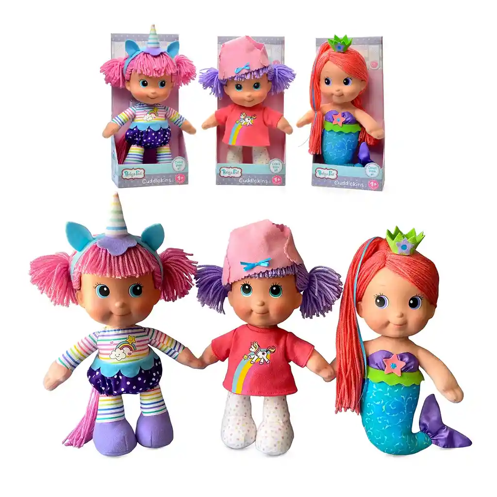 Viene en 3 temas elegantes y divertidos: Unicornio, Sirena y Elegante, ¡que tiene problemas para combinar su atuendo!. Trajes brillantes y coloridos: cada muñeca viene con cabello de hilo.