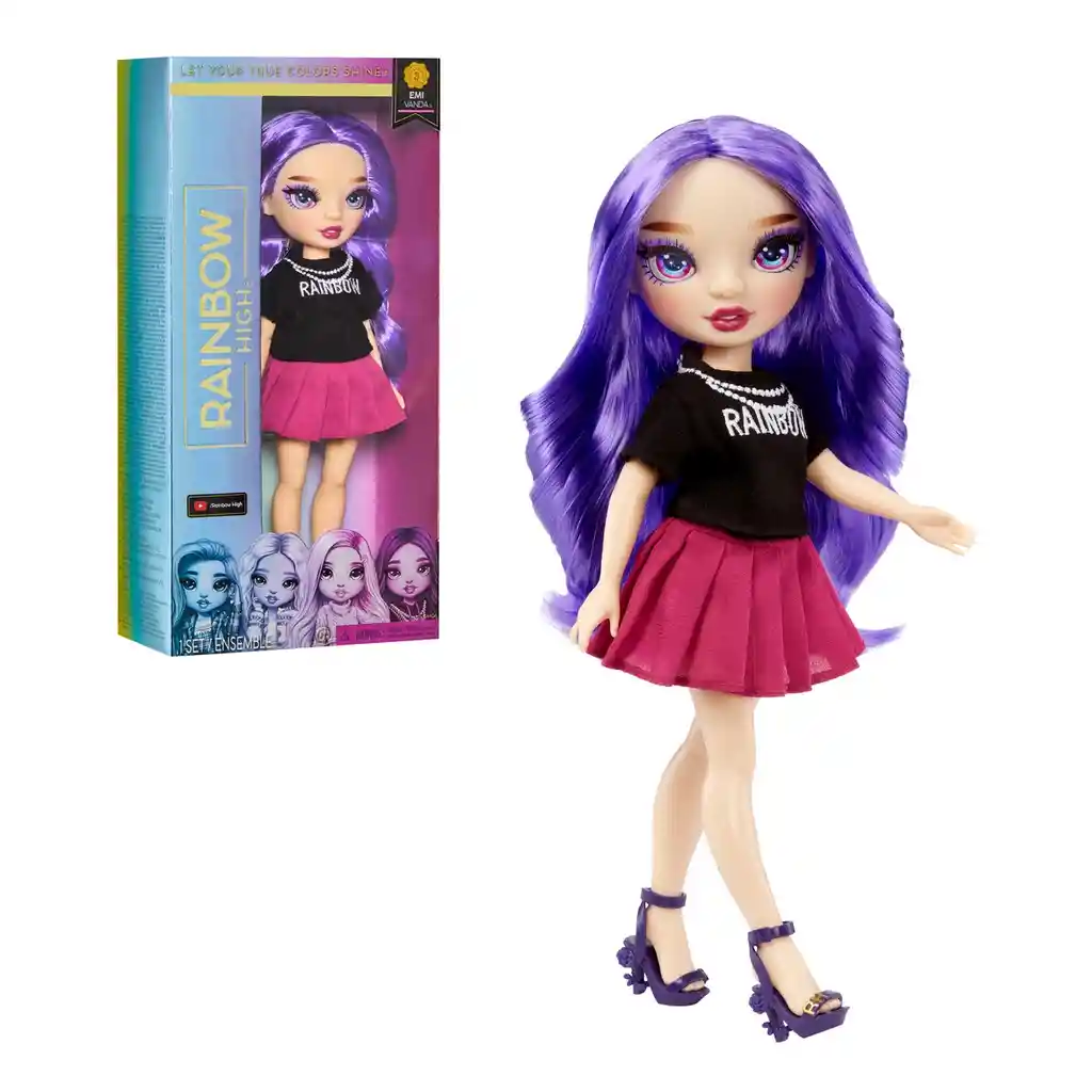 La muñeca Rainbow High Fashion OPP Emy Vanada viene con 2 trajes que puedes mezclar y combinar. El enfoque de Emy es las artes visuales y le encanta expresarse a través del arte y la moda, establece tendencias con sus looks oscuros y vanguardistas. Tiene hermosas características detalladas, hermoso cabello, pestañas largas y ojos de cristal, además cuenta con una variedad de puntos de articulación para una mayor posibilidad de poses. Incluye 1 muñeca de moda, 2 trajes completos, 2 pares de zapatos, accesorios, peine, 2 perchas y un soporte de muñeca.