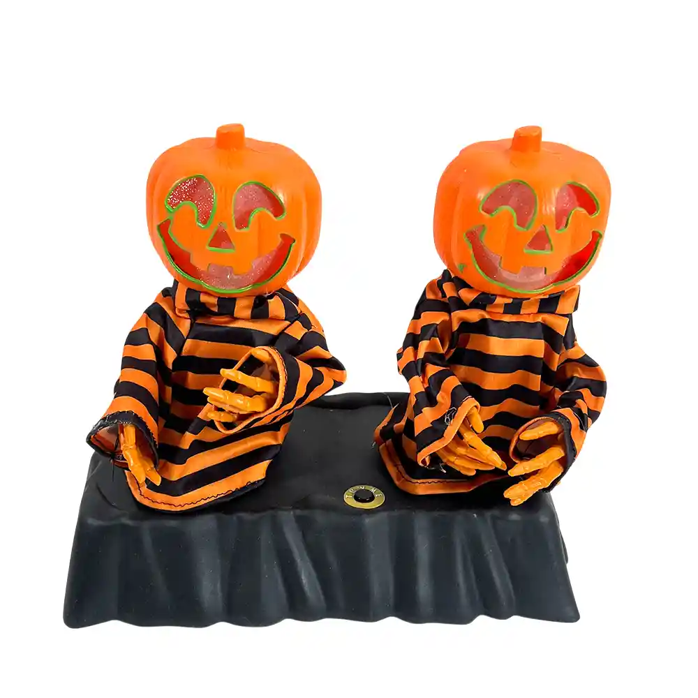 Dale vida y diversión a tu fiesta de Halloween con este increÃble animatronic de dos muñecos que bailan con una calabaza. Al activarse, se mueven al ritmo de la música y emiten sonidos divertidos, creando un ambiente único y lleno de energÃa. Diversión aseguradaSu diseño gracioso y temático lo convierte en la atracción perfecta para niños y adultos. ¡Todos quedarán encantados con su simpático baile! ”Š’¡ Efectos especialesIncluye movimiento dinámico y sonido, ideal para animar entradas, mesas de dulces o la pista de baile. Beneficios EscenografÃa entretenida para tu decoración de Halloween Muñecos bailadores con diseño temático de calabaza Ideal para sorprender a invitados y niños Fácil de ubicar en cualquier espacio Detalles técnicos Cantidad: 1 unidad Funciones: Movimiento y sonido Diseño: Dos muñecos con calabaza bailando Medidas: 22 x 25 x 15 cm Uso: Decoración animada de Halloween Haz que tu fiesta cobre vida con estos divertidos muñecos bailarines! PÃdelo ahora y recÃbelo en la puerta de tu casa. ƒ•º