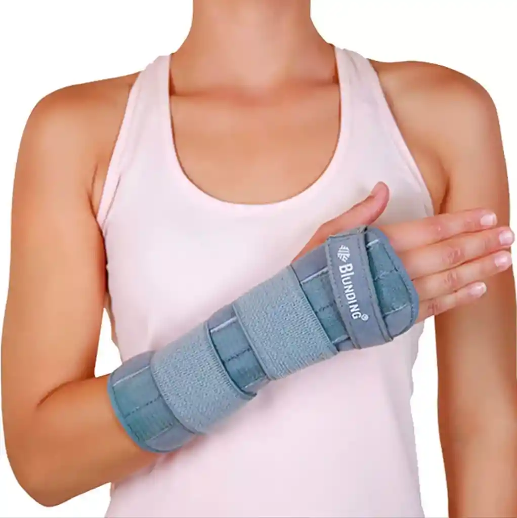 Muñequera para Túnel Carpiano confeccionado en velour y algodón, con dos férulas de aluminio moldeables y dos bandas de elástico para fijar la muñequera, ajustables con cierre de velcro.<br /><br />INDICADO PARA:<br /><br />Inmovilización para síndrome del túnel carpiano<br />Tratamiento ortopédico para lesiones de tendones del carpo.<br /><br />TALLA ÚNICA: Contorno de muñeca: 15 - 23 cm.<br />Ambidiestra<br /><br />COLOR: Gris<br /><br />COMPOSICIÓN: <br /><br />Cara Externa: 100% Poliéster<br />Cara Interna: 100% Algodón<br />Elástico: 73% Poliéster / 21% Nylon / 6% Spandex<br />Férula: 100% Aluminio<br />Cierre de Contacto: 100% Nylon<br /><br />CERTIFICACIÓN Y REGISTROS:<br /><br />Certificación de Norma ISO-9001/2008 Sección 8.2.3 Nº CL13/20100668<br />Registro Nº 9104922<br />Registro del Instituto Nacional de Salud Pública Nº EDM 198/14<br /><br />*Blunding recomienda utilizar este producto bajo prescripción médica.