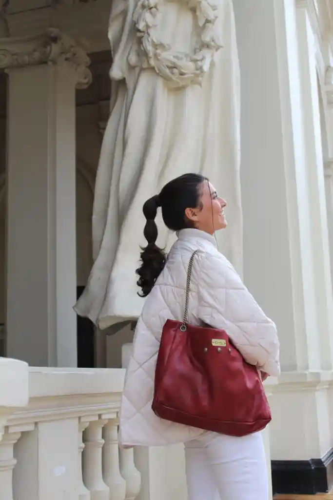 Medidas: 39 cm x 18 cm Cadena: 130 cm
