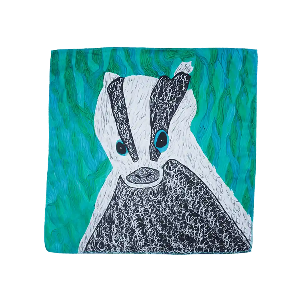 My Name is Digger Knot Wrap está hecho de plástico 100% reciclado y presenta una ilustración de Cameron Morgan de Project Ability. Project Ability es una colaboración de un grupo de artistas, una organización benéfica y una galería de artes visuales con sede en Glasgow que apoya a las personas con problemas de aprendizaje y problemas de salud mental para crear arte. El diseño de Cameron se inspira en los programas de naturaleza de la televisión que tanto le gustan. "Después de ver una foto muy bonita de un tejón, pensé que sería un diseño precioso para un Knot Wrap. Quería hacer algo un poco diferente y pensé que un tejón era un buen tema, ya que sólo salen por la noche, algo que me gusta. Me gusta que sean criaturas tímidas". Detalles de mi Knot Wrap 100% algodón orgánico 46cm x 46cm ¡Un regalo por partida doble! Si quieres envolver algunos de tus productos en un Knot Wrap, solo debes indicarlo en el mensaje del pedido ¡y nosotros lo envolvemos para ti!