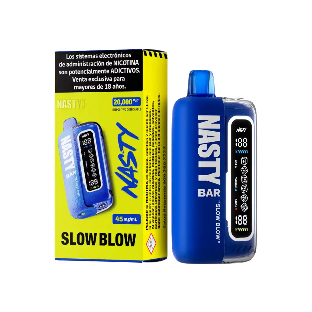 Olvídate de lo común, este es el primer desechable con control dinámico de 3 modos, listo para llevar tu experiencia de vapeo al siguiente nivel. Potente, innovador y con un diseño que grita estilo, el Nasty Bar 20K es compacto, recargable por USB-C y viene con flujo de aire ajustable para que lo adaptes a tu gusto. Además, su pantalla digital animada te muestra en tiempo real cuánta batería y líquido te queda. 🎯 Lo que lo hace único: Eco Mode → Caladas suaves + máxima duración (hasta 20.000 puffs). Normal Mode → El balance perfecto entre sabor y vapor (hasta 15.000 puffs). Turbo Mode → Intensidad brutal y nubes densas (hasta 10.000 puffs).