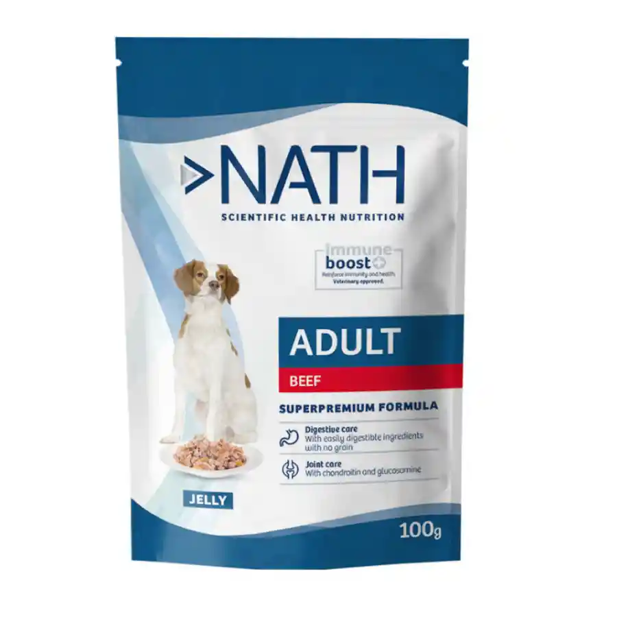 Si tu mascota es amante de las texturas suaves y suculentas para alimentarse, debes ofrecerle la comida húmeda para perros de Nath. Se trata de una fantástica receta que contiene carne fresca de ternera mezclada con zanahorias y patatas envueltas en gelatina, que brindan una dieta completa y equilibrada que satisfará todas sus necesidades nutricionales con un sabor y una textura que tu mascota adorará comer todos los días. Nath ha creado esta comida húmeda con ingredientes de la más alta calidad para ofrecer a tu perro adulto una alimentación nutritiva, saludable y muy deliciosa. La carne de ternera es rica en proteínas y, junto a las verduras, brindan un gran aporte de vitaminas y minerales que promueven una vida saludable y llena de energía para que tu mascota se mantenga activa en su día a día. Contiene glucosamina y condroitina, componentes que favorece un buen cuidado de las articulaciones de tu perro para mantenerlas fuertes y saludables. No contiene cereales, ideal para tu peludo que sufre de alergias o intolerancias alimentarias, ya que resulta fácil de digerir y favorece la salud digestiva. Además, incluye la fórmula especial “Immune Boost” que refuerza el sistema inmune y ayuda a mantener una buena salud en tu mascota. Características: Comida húmeda para perros adultos. Fácil de digerir para favorecer un buen cuidado digestivo. Contribuye con la buena salud articular. Refuerza el sistema inmune y favorece la buena salud. Aporta energía para mantener activa a tu mascota. Promueve una vida saludable y llena de vitalidad. Fenomenal mezcla de carne de pavo con arándanos, calabaza y brócoli. Textura de gelatina que resulta deliciosa. No contiene cereales. Elaborada con ingredientes de alta calidad. USO Y ESPECIFICACIONES: Comida húmeda para perros adultos, adecuado para ofrecer a tu mascota una alimentación completa y equilibrada que le ayudará a mantener una vida saludable. Instrucciones de uso: Chequea la tabla de dosificación para no sobrealimentar a tu mascota. Almacena este alimento en un lugar fresco, seco y alejado del sol. Sirve a temperatura ambiente. Una vez abierto, guárdalo en el refrigerador. Tu perro deberá consumirlo en un plazo de 24 horas. Recuerda suministrar a tu mascota agua fresca en todo momento. ¡La deliciosa comida húmeda de ternera con zanahoria y patatas en gelatina de Nath se convertirá en el alimento favorito de tu perro adulto!