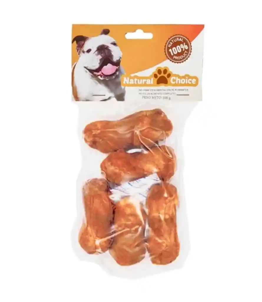 Hueso Cartilago Bañado en Pollo es excelente para ser usados como premios o snack para tu mascota y viene en una presentación de 5 unidades, ideal para dar periódicamente sin que se agoten. Contiene un sabor de pollo bastante real haciéndolos bastante irresistibles para tu mascota. Los snacks Hueso Cartilago Bañado en Pollo son la mejor manera de recompensar a tu mascota tras un buen comportamiento, un logro o simplemente demostrarle lo mucho que le amas. ¿Y por qué no? También nos hace felices a nosotros, ya que disfrutamos de verle súper feliz a la hora de comer, o disfrutando un delicioso postre. CARACTERISTICAS Excelentes huesos de cartilago bañado en pollo. 100% Natural. Estas barras brindan entretención y placer a tu mascota. Ayuda a mantener los dientes limpios al liberarlos de la placa bacteriana. Mejora la salud bucal. Peso neto de 100 gramos. Al tener cuero rojo llama aún más su atención. ANALISIS Proteina Cruda 75% Grasa Cruda 3.5% Fibra Cruda 1.5% Humedad 18% INGREDIENTES Pollo. Cuero. Harina de arroz. Glicerina. Sal. Sorbato de potacio. RECOMENDACIONES Se recomienda mantener la supervisión de tu mascotita. No es alimento completo por lo que debe considerarse como snack. Mantener siempre agua disponible en todo momento. Se recomienda dar como snack 2-3 veces como máximo un huesito a la semana. Otro beneficio de esta Hueso Cartilago Bañado en Pollo es su rol protagónico a la hora de aliviar el dolor causado por la dentición, ya que la aparición de nuevos dientes puede provocar muchas molestias en tu bebe. Muchas veces gimen y lloran por esta causa, alterando el descanso de ellas y de los miembros de la familia. Con este tipo de masticables se logra aliviar el dolor de encías de una vez por todas.