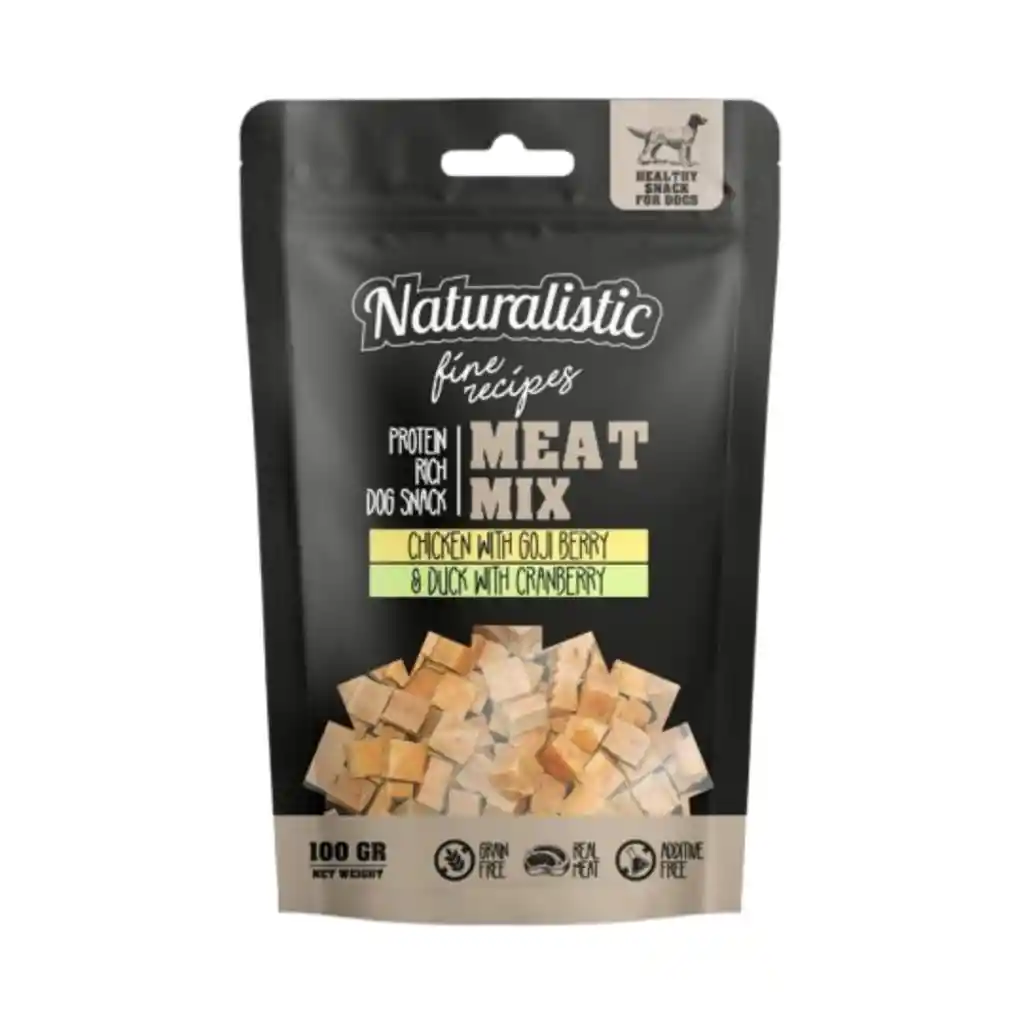 Snack para perros con forma de cubitos de dos sabores: pollo con bayas de goji y pato con arándonos rojos. Este delicioso snack para perros ha sido elaborado a base de dos proteínas de alta calidad y 100% reales de pollo y pato, mezclados con bayas de goji o arándanos rojos para conseguir un snack delicioso, con una alta fuente de antioxidantes, vitaminas y minerales. Las características y beneficios de este producto son: Ideal para perros de todas las razas. Para todas las edades. Mix de sabores para todos los gustos. Con sabroso sabor a pollo, goji, pato y arándanos rojos. Alto en proteína animal de calidad. Libre de granos, saborizantes ni aditivos.