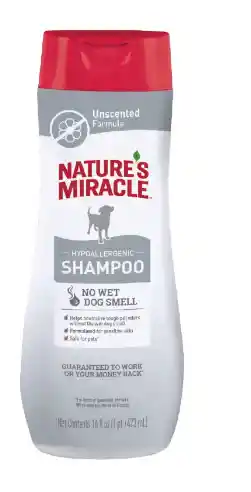 Cuando los olores fuertes de los perros comienzan a arrugar su nariz, ¡es hora del champú hipoalergénico Nature’s Miracle! Ideal solo para perros. • El champú reformulado ayuda a neutralizar los olores y refresca el pelaje, sin el olor a perro mojado. • Sin perfume • Contiene aloe vera y pH equilibrado para perros.