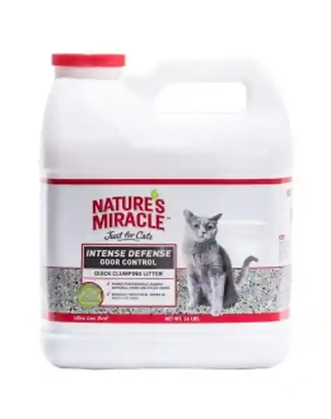 Nature's Miracle Intense Defense Odor Control Clumping Litter Combina la Avanzada Tecnología de Control de Olores Exclusiva de Nature's Miracle Con el Intenso Rendimiento de la Bentonita de Sodio Para Maximizar su Poder. Estas Características También le Confieren la Capacidad de Ser Una Excelente Arena Para Cajas Que Ocupan Varios Gatos. Las Ventajas de Este Producto Son Apto Para Rendimiento Extremo Gracias a su Sistema Odor Lock (Es Decir Contiene Enzimas Propias de la Marca Natures Miracle Para Degradar Los Componentes Orgánicos Del Olor de Las Fecas y Orina). Única Con Aglutinación Inmediata Apta Para Más de 1 Gato en el Hogar Que Permite Mantener Una Caja de Arena Más Limpia. Alta Eficiencia. No.1 en Usa. Practica Presentación en Bolsa.