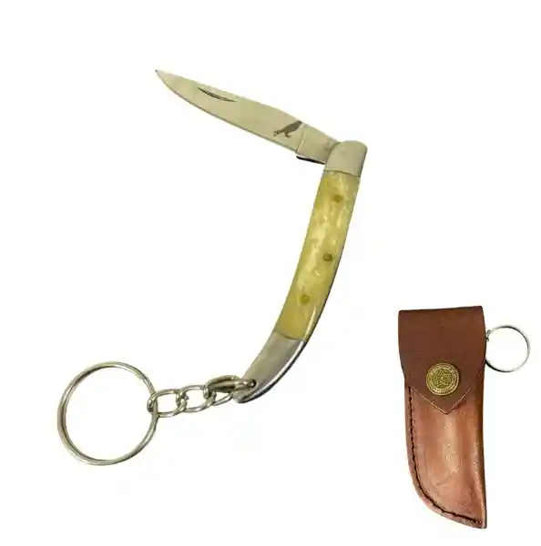 Chiu Chiu es nuestro llavero navaja ganador de 13 cm de largo. Especificaciones Técnicas: - Material Hoja: Acero Inoxidable J2 - Empuñadura: Hueso de Vaca - Largo Total: 13.5 cm - Largo Hoja: 5 cm - Espesor Hoja: 2 mm - Peso: 250 G - Funda de cuero: Incluida.
