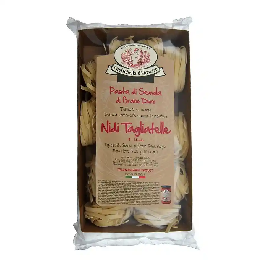 Nidos de pasta larga y plana. Pasta de semola de grano dura moldeada en bronce y secada a baja temperatura. Hecho en Italia.