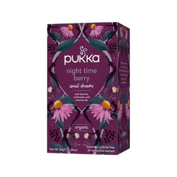 Dale la bienvenida a las noches de descanso con esta infusión orgánica relajante. Un toque de manzanilla, lavanda, valeriana y berries son lo que necesitas para dormir durante la noche sin complicaciones. Si te cuesta conciliar el sueño, la lavanda, la manzanilla y la valeriana te ayudarán a conciliar el sueño. Para agregarle un toque cítrico, la rosa mosqueta y las flores de saúco son perfectas. Sin teína | Orgánico | Vegano Ingredientes: Rosa Mosqueta, Flor de Hibisco, Flor de Manzanilla (15%), Flor de Lavanda, Raíz de Regaliz, Raíz de Jengibre, Raíz y hojas de Echinácea (6%), Bayas del Saúco (4%), Fruto de Grosella Negra (4%), Raíz de Valeriana, Saborizante natural Arándano, Saborizante natural Grosella Negra. Incluye 20 bolsitas 100% biodegradables, hechas de una mezcla especial de abacá natural (un tipo de plátano) y fibras de celulosa vegetal.
