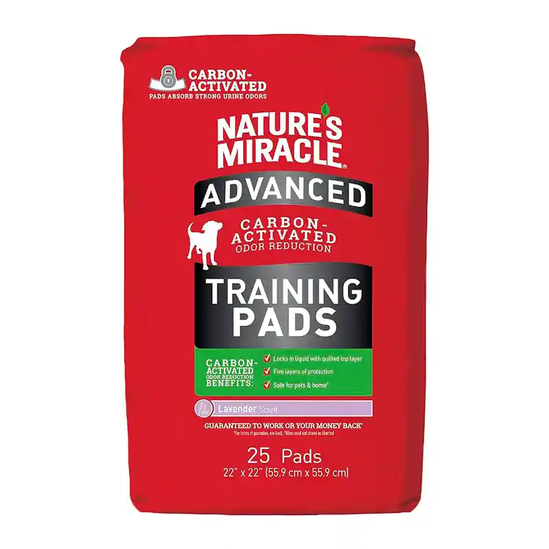 NM Training Pads 25und ayuda a entrenar a tu cachorro con las carpetas orientadoras para cachorros de Nature’s Miracle. Disponible de 25 unidades, estas almohadillas bloquean el líquido con una capa superior acolchada y ayudan a mantener sus pisos secos con cinco capas de protección y una tecnología de absorción rápida.