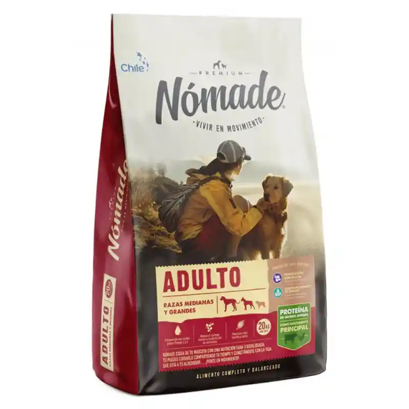 Nómade Adulto Carne es un alimento para perros diseñado específicamente para satisfacer las necesidades nutricionales de los perros adultos, con un enfoque en la carne como fuente principal de proteínas.