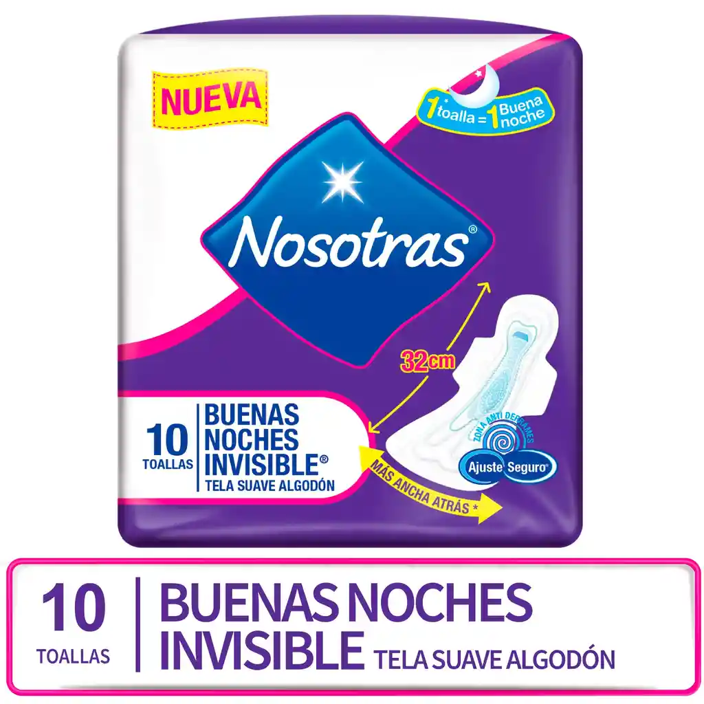 Nosotras Toallita Femenina Buenas Noches Suave 10 Und
