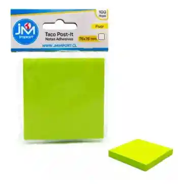 Taco post it de color verde flúor de 100 hojas, medidas 76 x 76 mm. Diseñado para uso escolar y oficina.