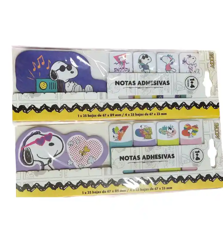 Hermosos diseños de Snoopy en notas adhesivas para organizar tus dias de la manera mas linda 1 x 25 hojas de 67x89mm 4 x 25 hojas de 67x23mm
