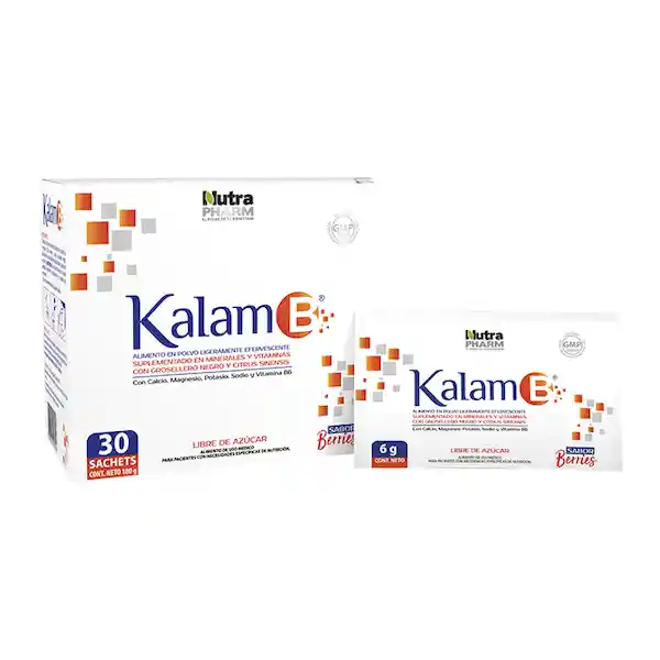 Kalam-B es Una Asociación de Importantes Minerales, Vitaminas e Ingredientes Naturales Que Contribuyen a Regular Los Niveles Electrolitos a Nivel Muscular y a Mejorar la Circulación Sanguínea, Disminuyendo la Frecuencia y Dolor de Calambres.