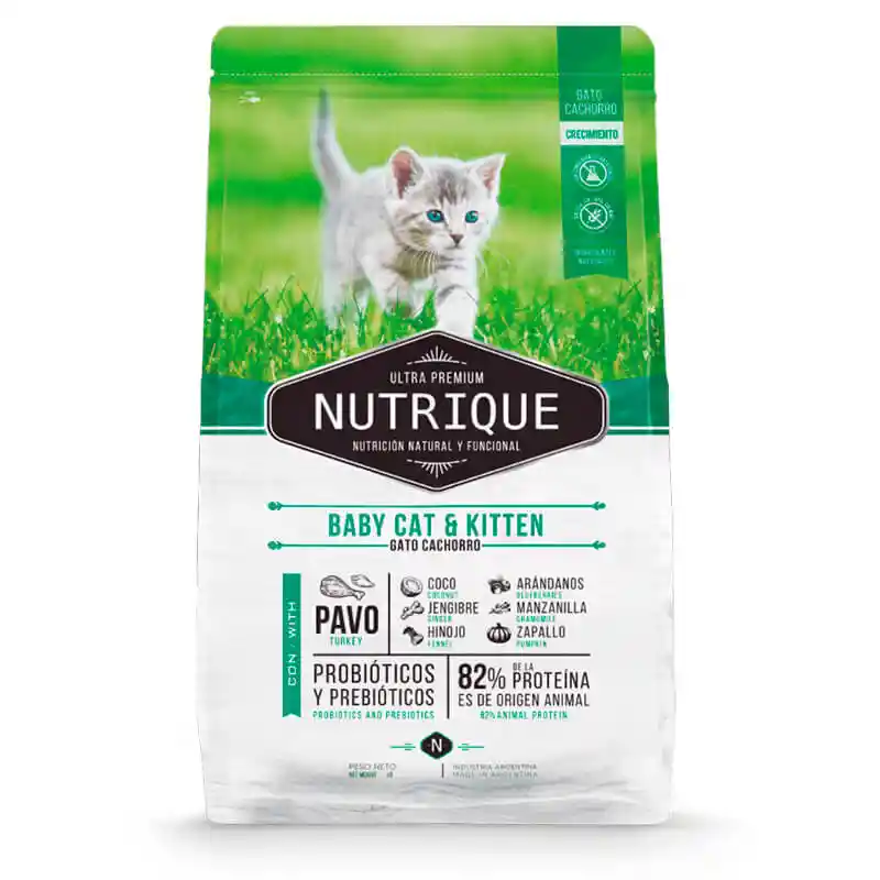Nutrique Baby Cat/Kitten es un alimento indicado para gatitos desde que dejan la leche materna hasta el año de vida. Formulado con el exclusivo Smart Growth Complex ingredientes naturales que aportan proteínas de gran calidad indispensables para esta etapa de la vida en la que el gato cachorro tiene altos requerimientos nutricionales.
